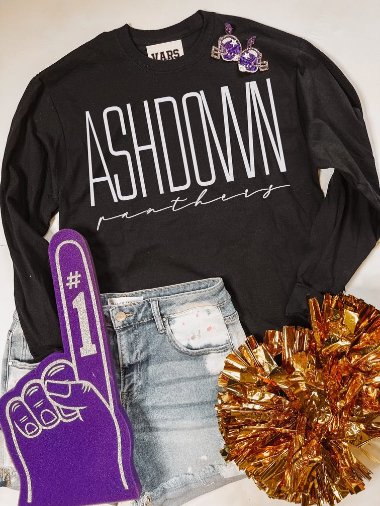 "Ashdown Panthers" Script on a Black Long Sleeve.