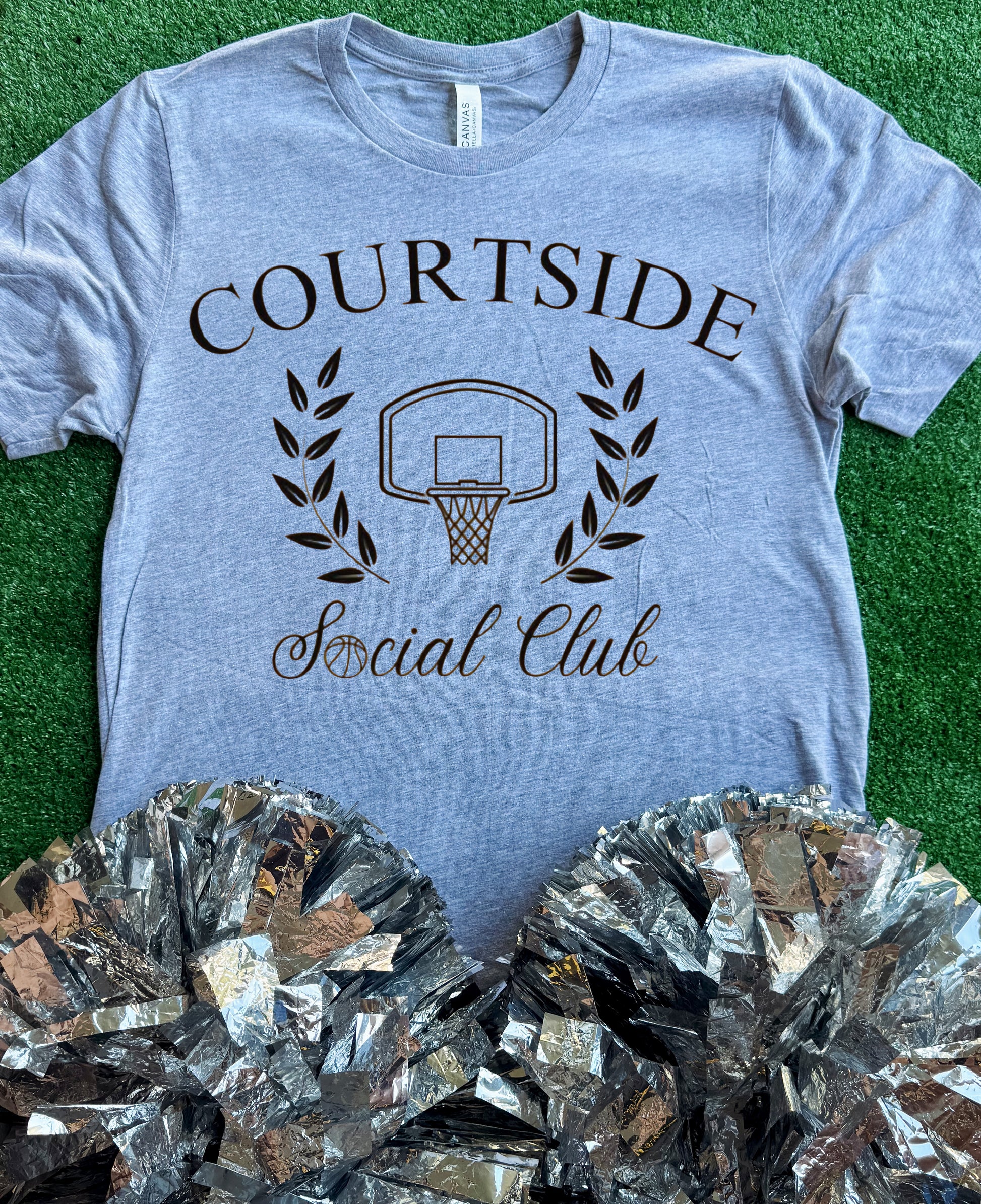 “Courtside Social Club” on a short sleeve Bella Canvas tee