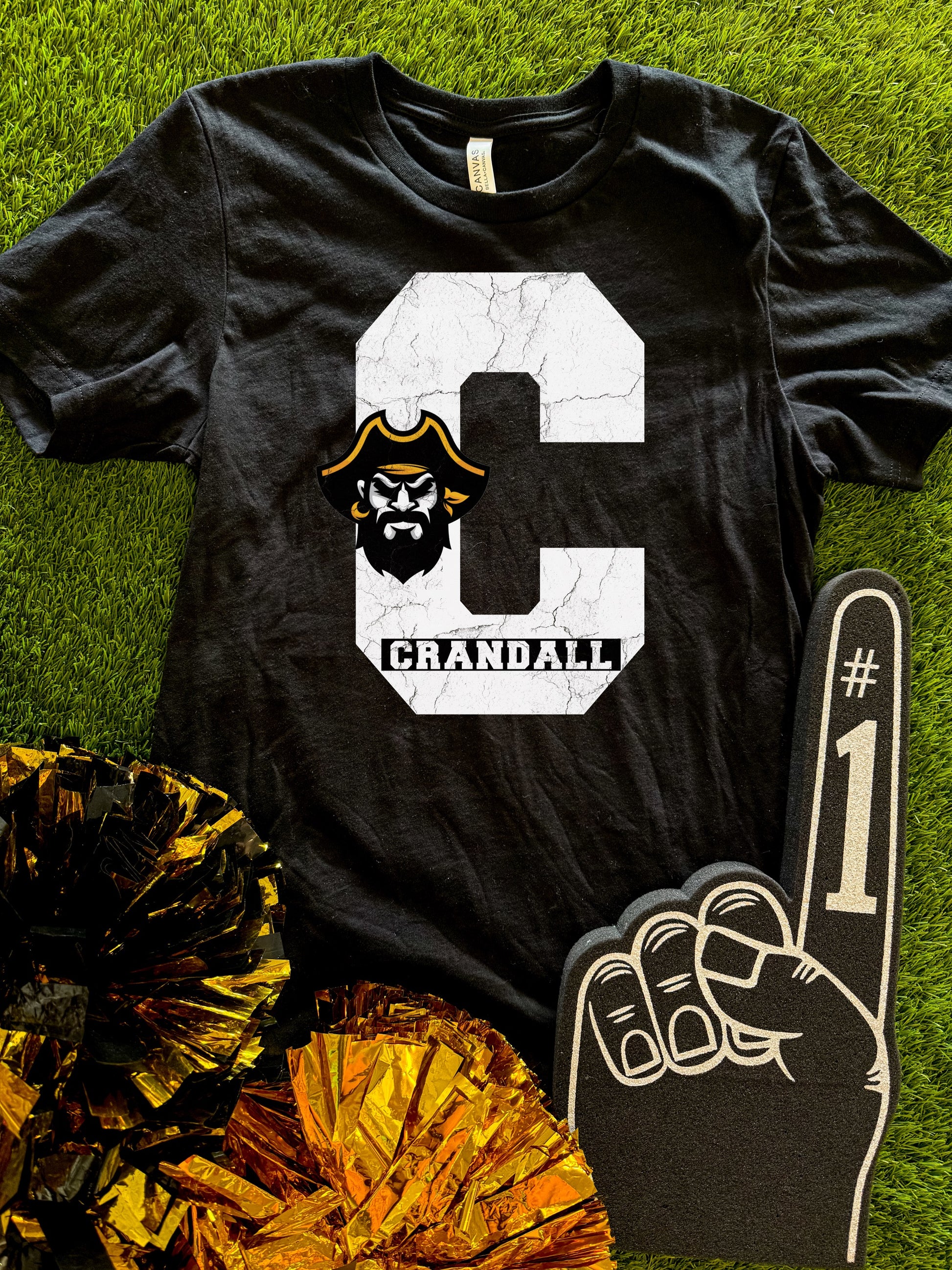 “Crandall Logo” on a Black Short Sleeve Bella Canvas Tee