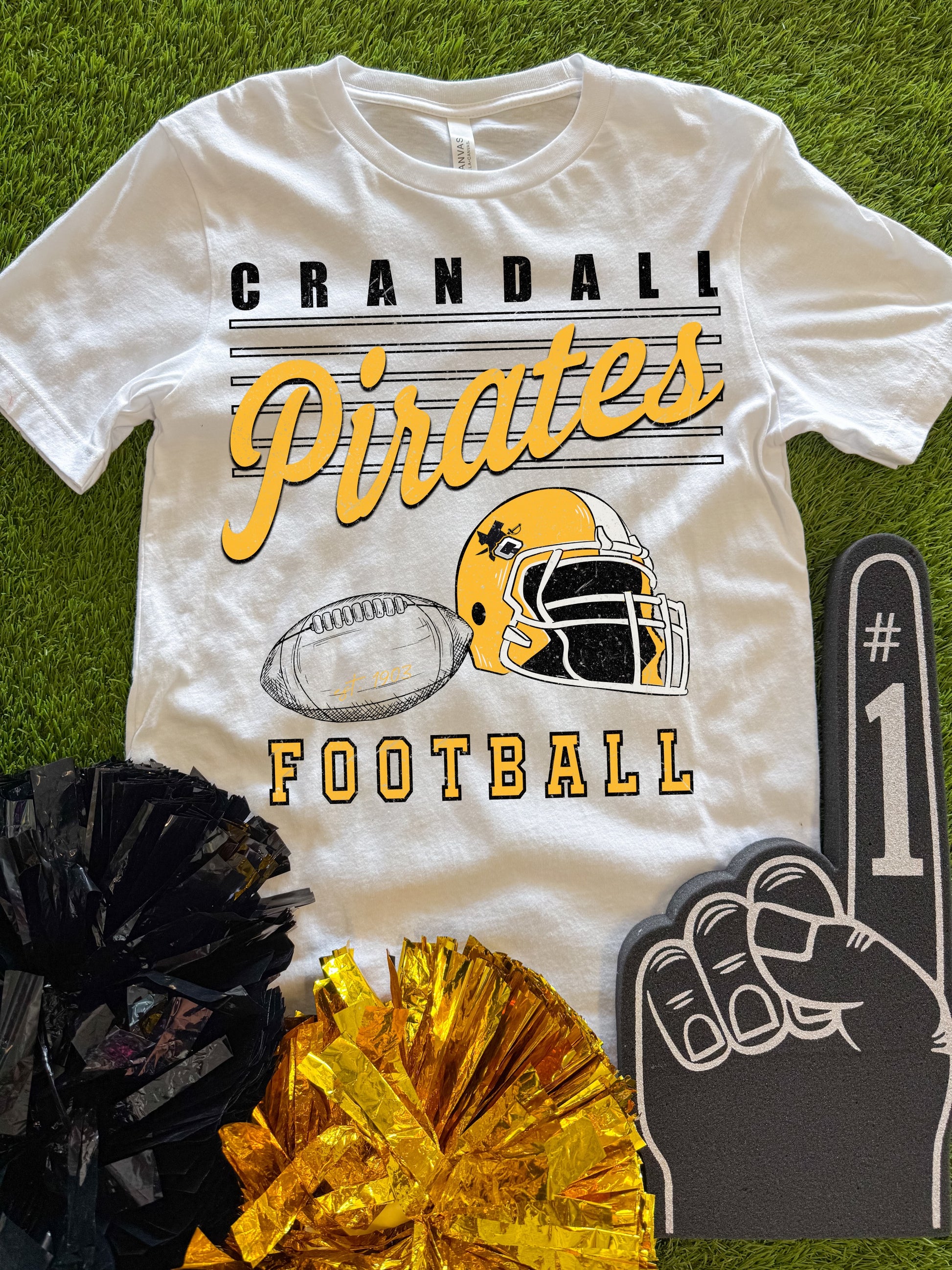 “Crandall Pirates Football” on a White Short Sleeve Bella Canvas Tee