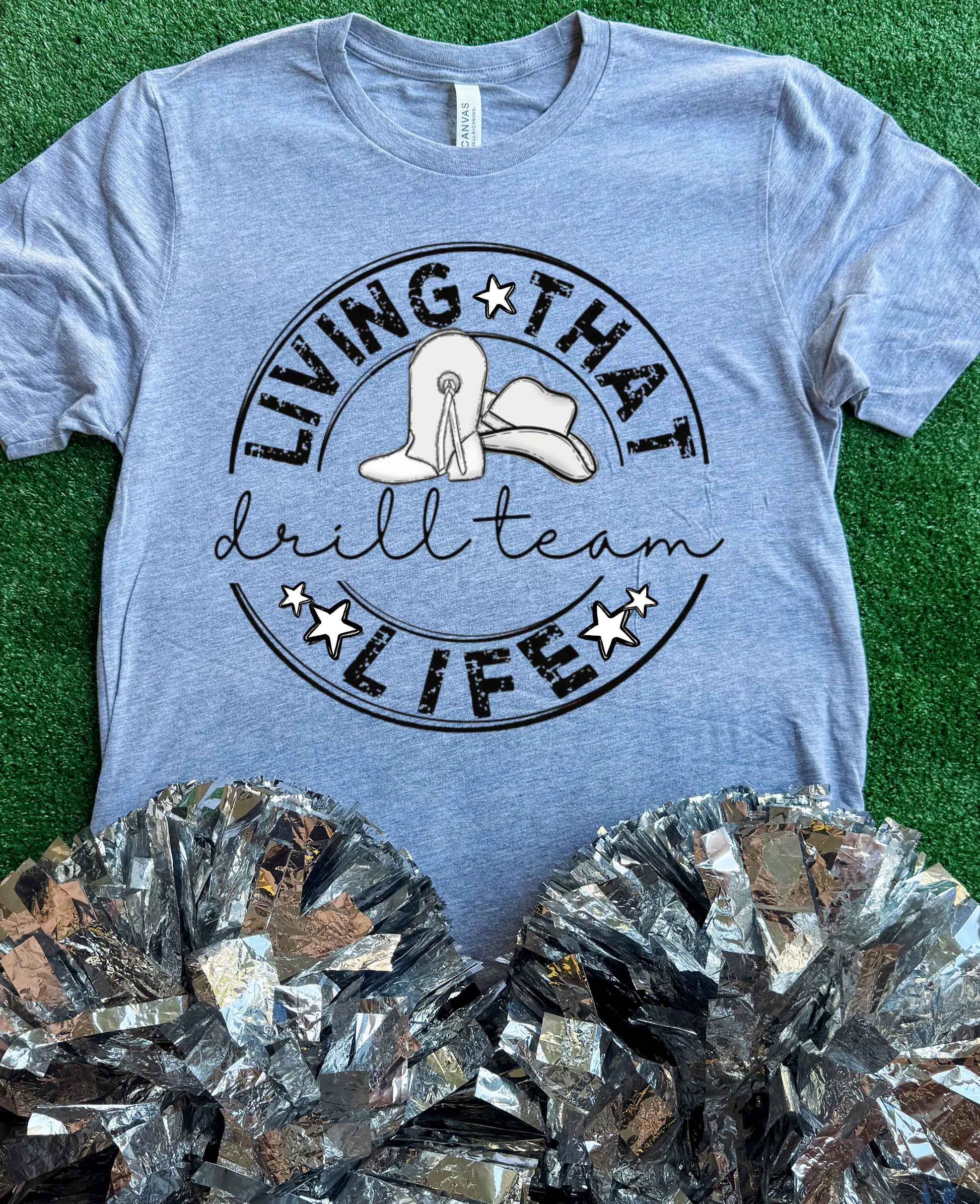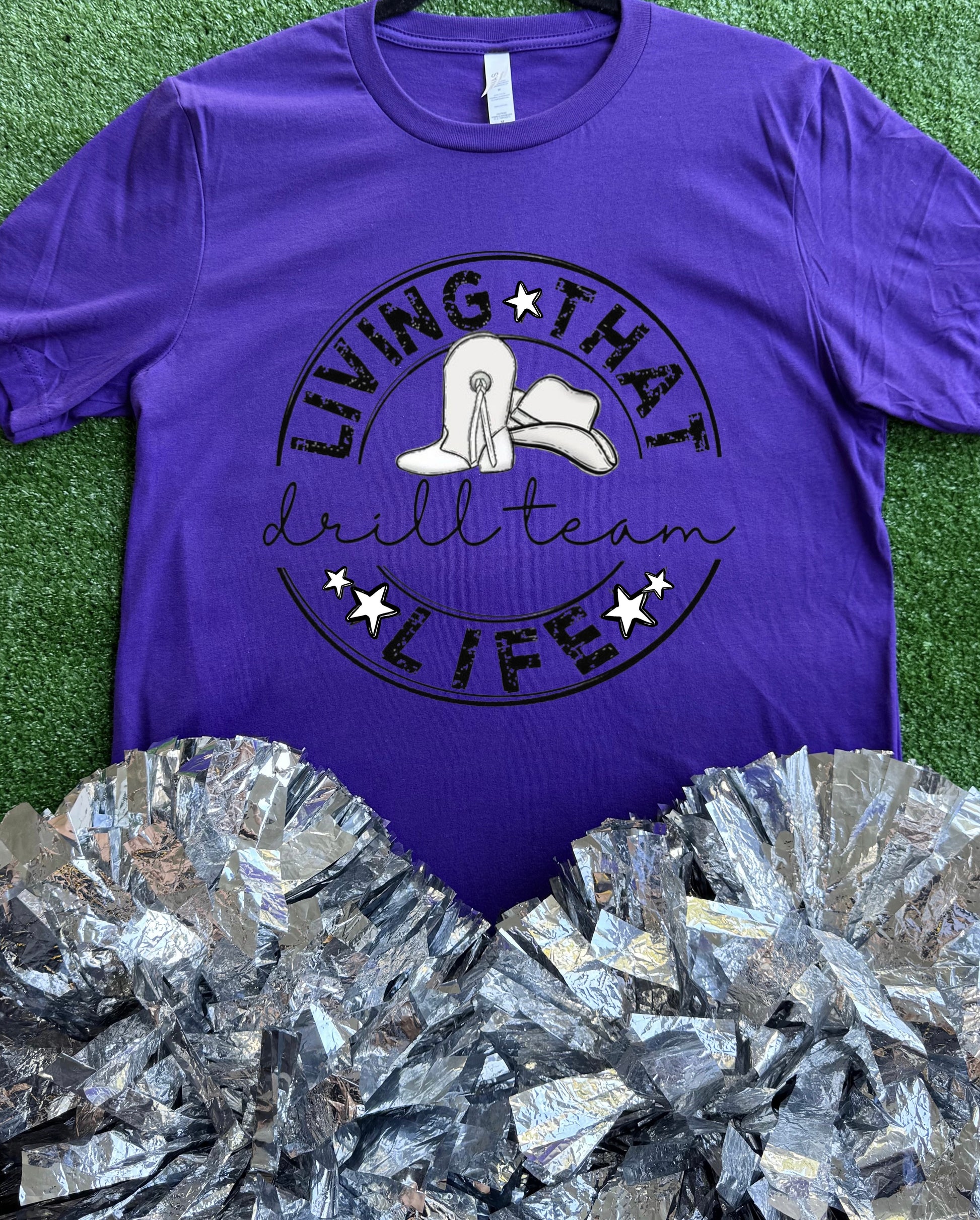 “Living That Drill Team Life” on a short sleeve Bella Canvas tee