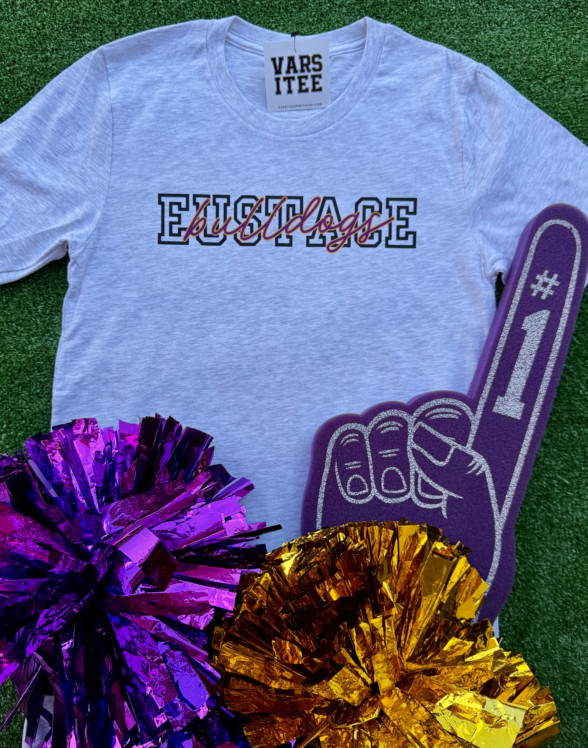 "Eustace Bulldogs" on a Ash Grey Short Sleeve Bella Canvas Tee