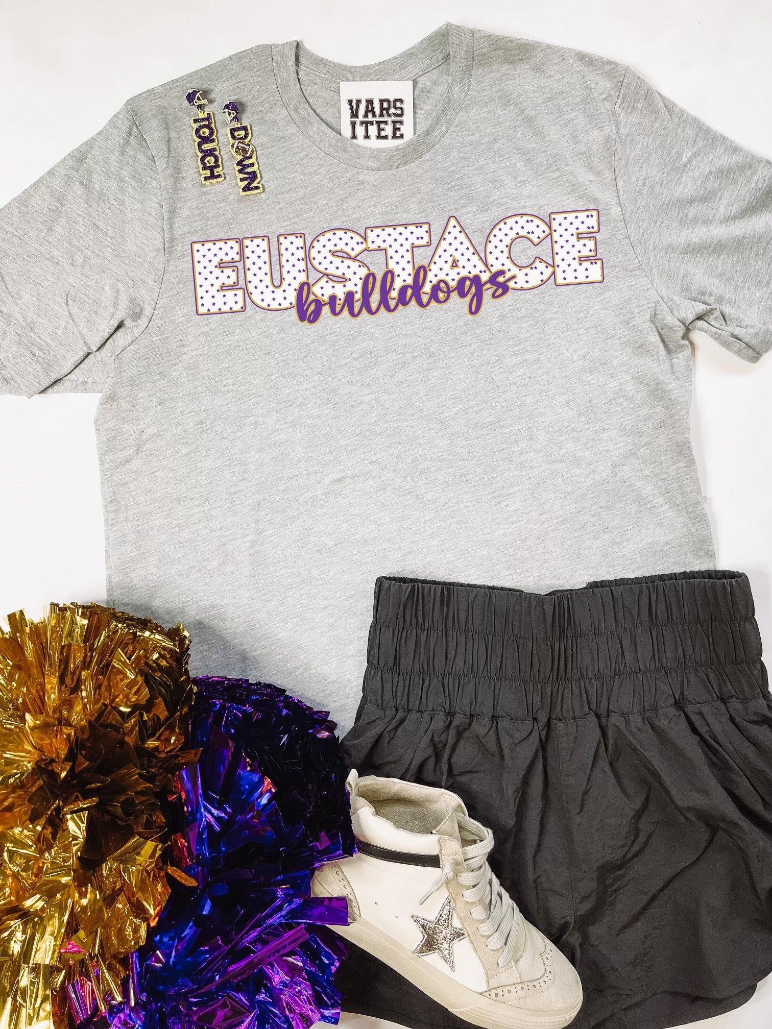 Star Print Eustace Bulldogs on a Grey Tee.