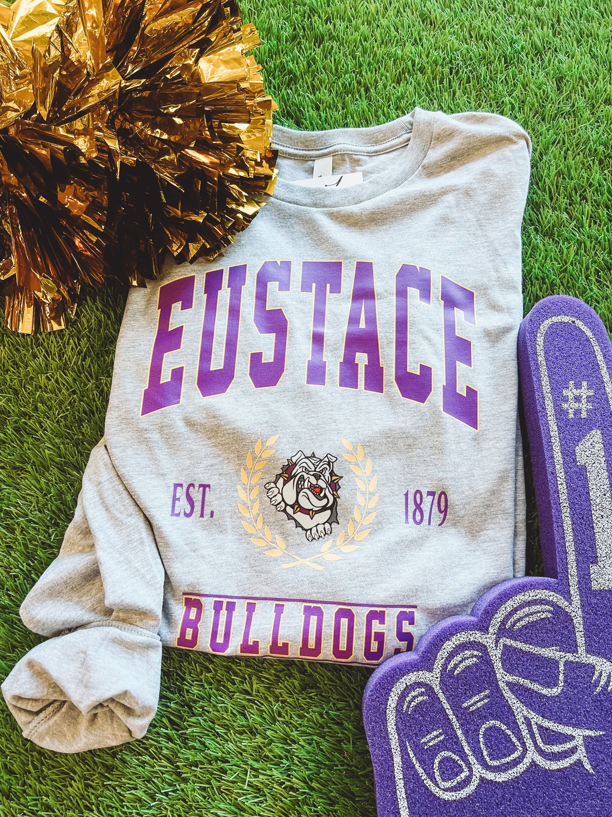 Eustace Est. 1903 On A Grey Long Sleeve Tee.