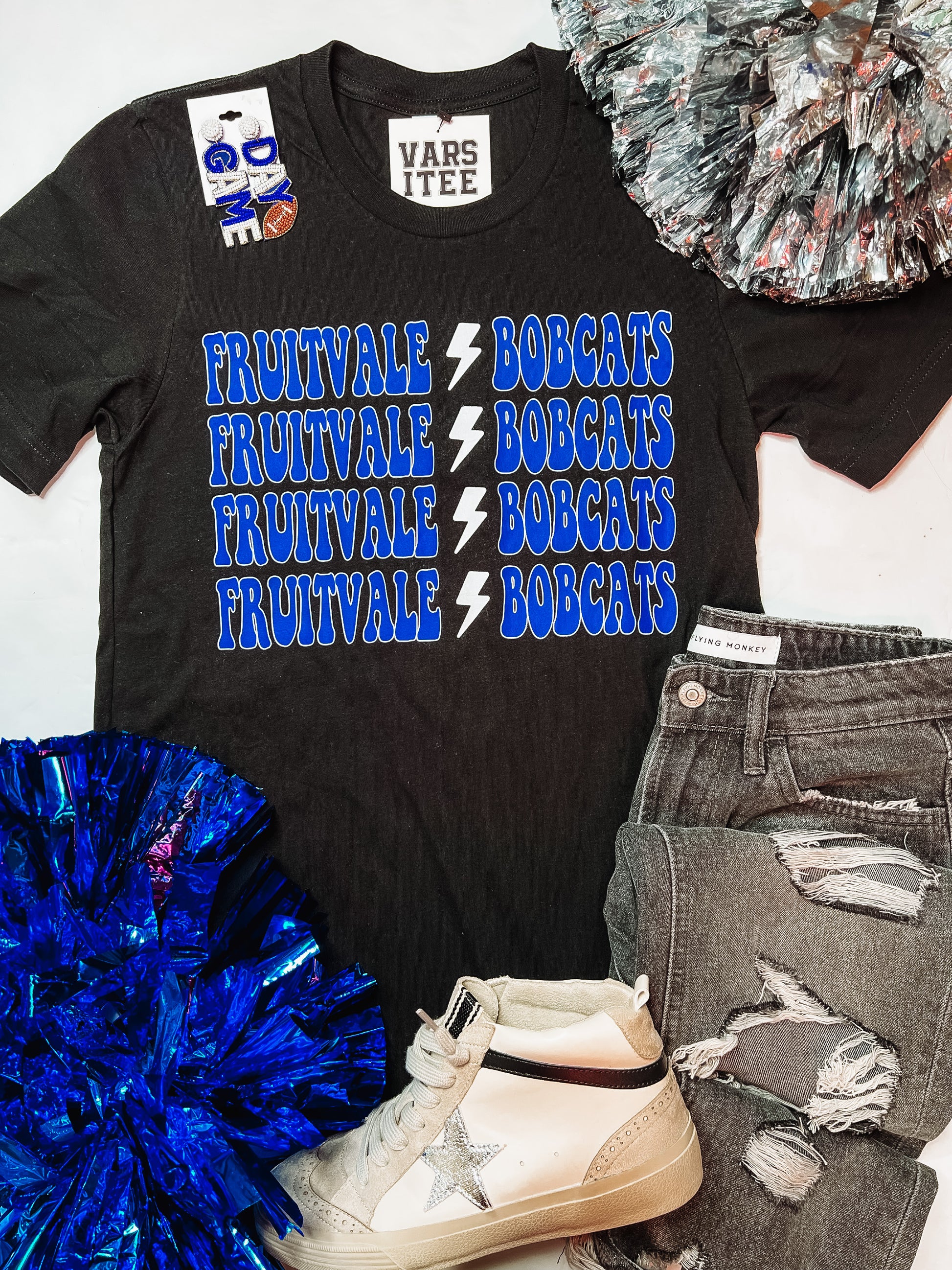 "Fruitvale Bobcats" Bolt Graphic on a Black Tee.