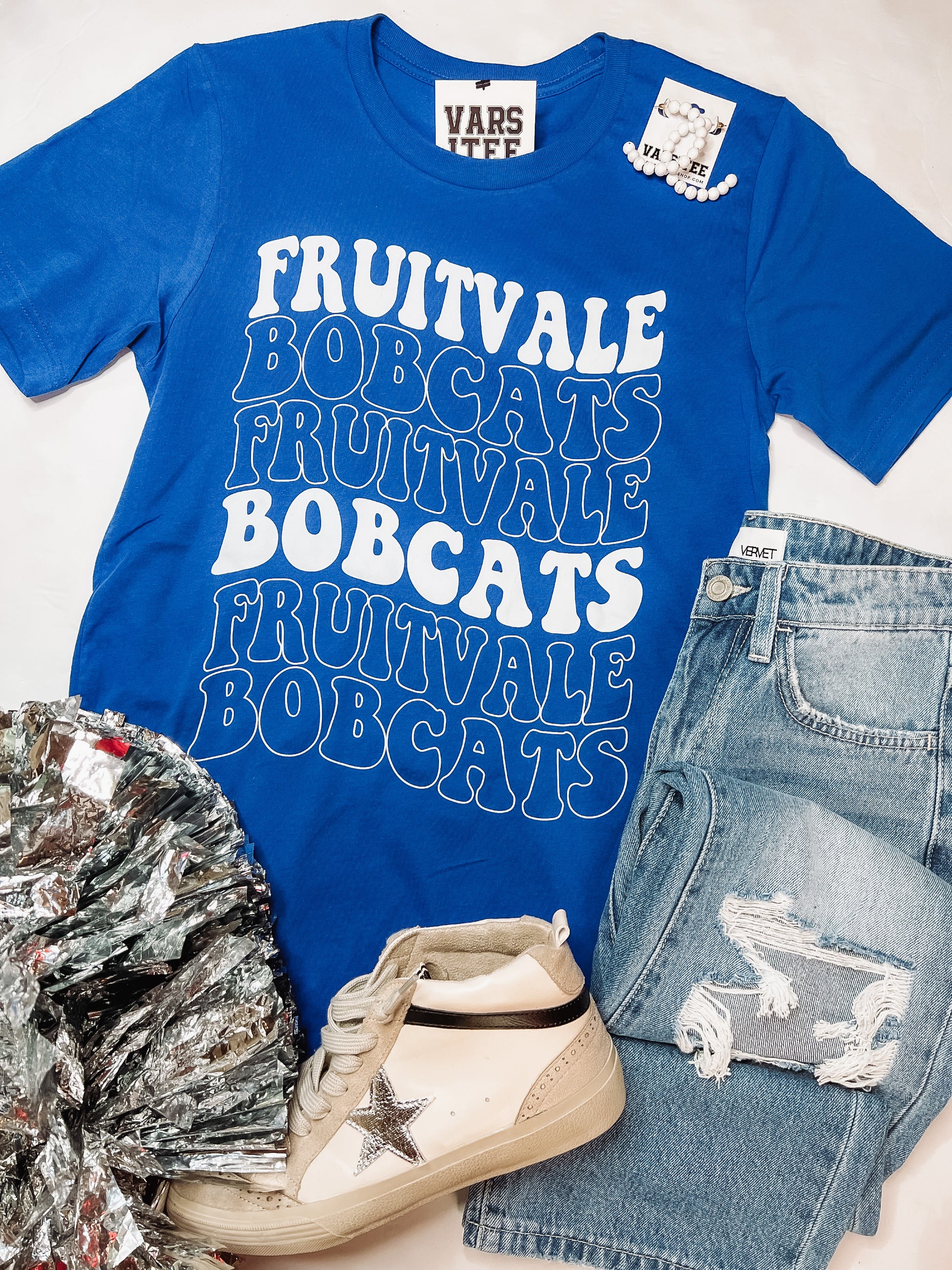 “Fruitvale Bobcats” Repeat on a Blue Tee.