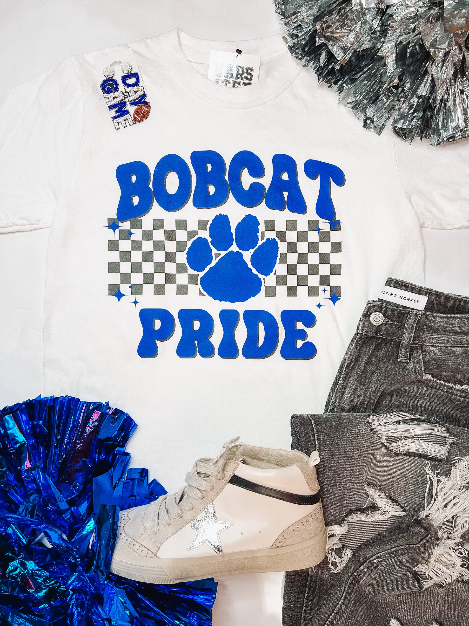 "Bobcat Pride" Graphic on a White Comfort Color Tee.