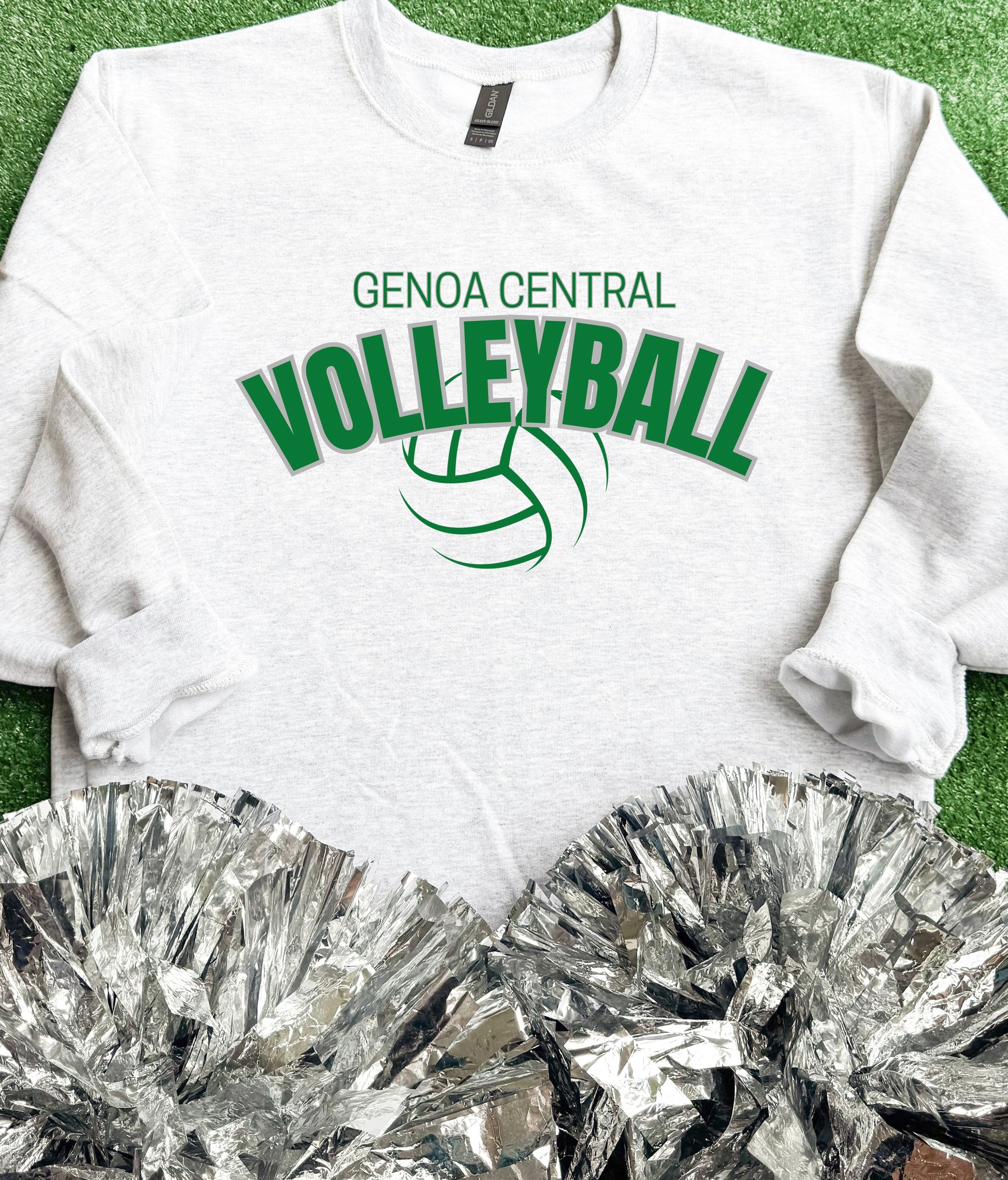 “Genoa Central Volleyball” on a White Gildan Sweatshirt.