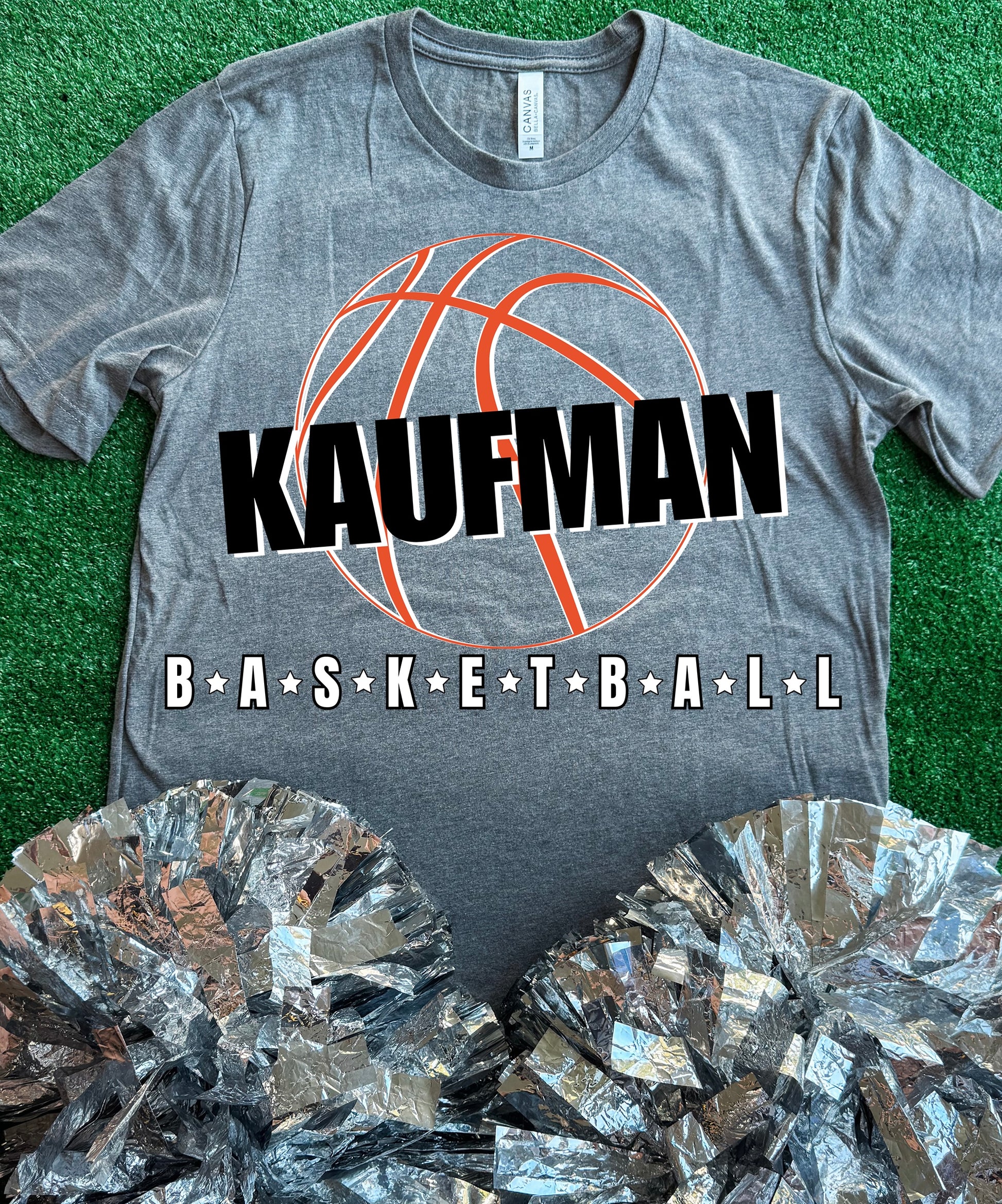 “Kaufman Basketball” on a Grey Short Sleeve Bella Canvas Tee
