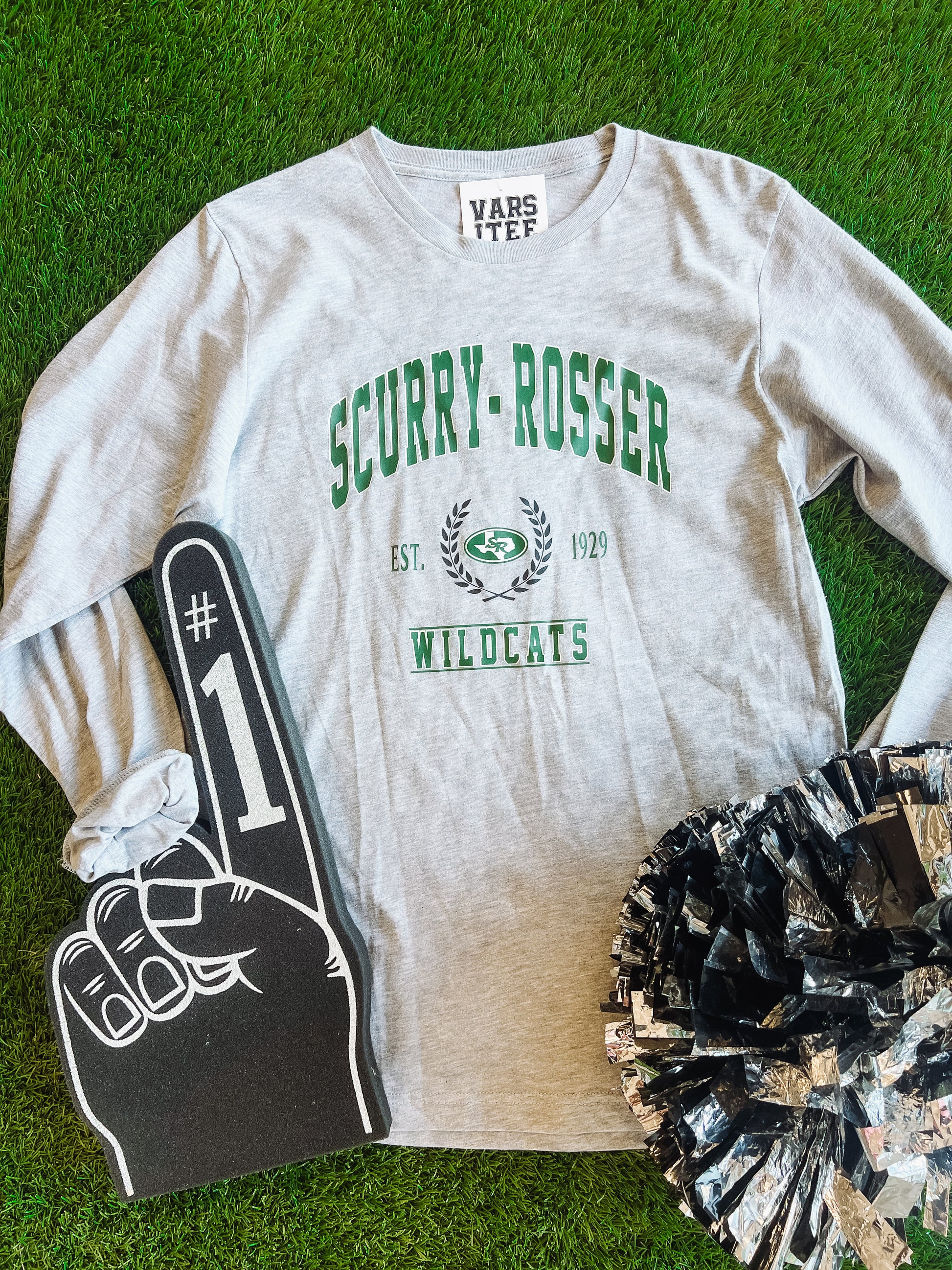 Scurry-Rosser Wildcats Est. 1853 Graphic on a Sport Grey Bella Canvas Long Sleeve.