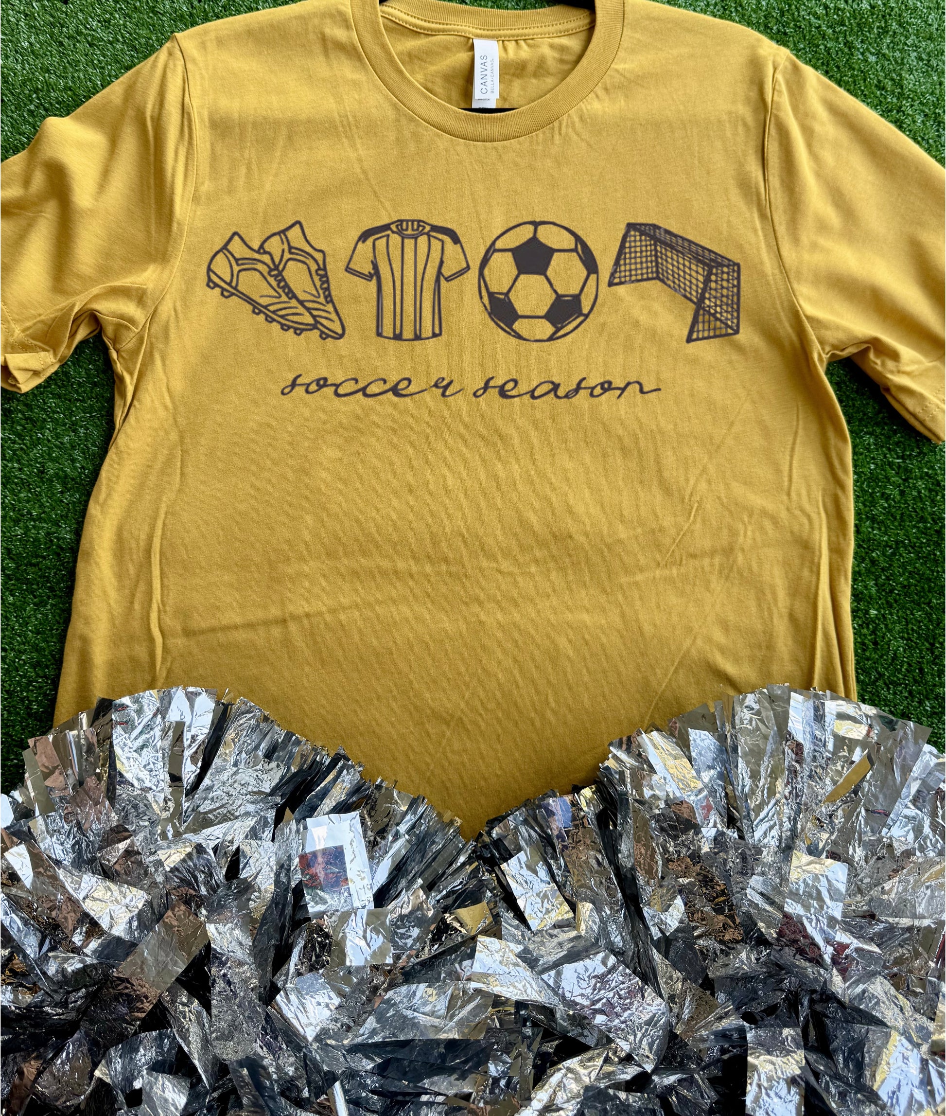 “Soccer Season” on a short sleeve Bella Canvas tee