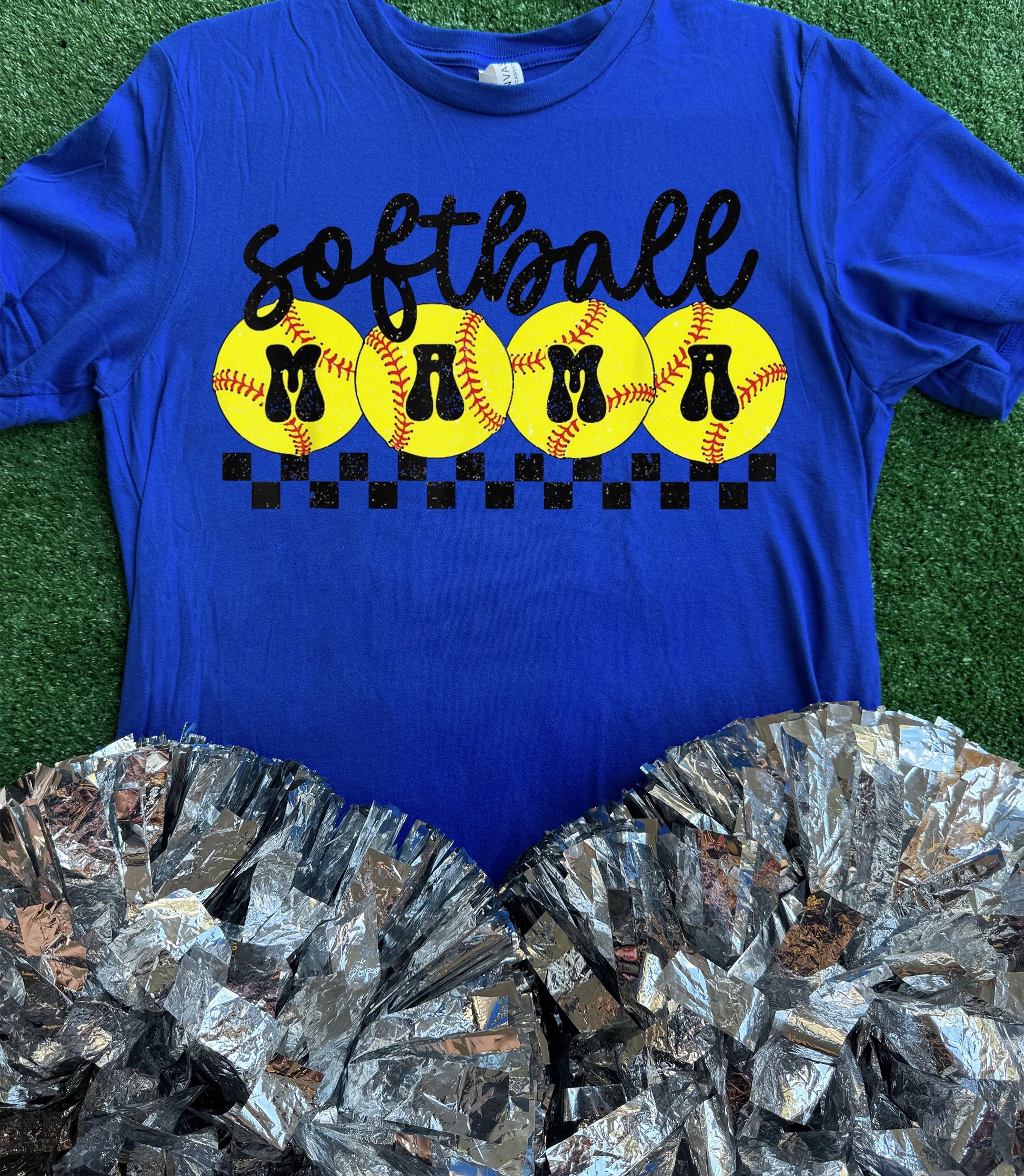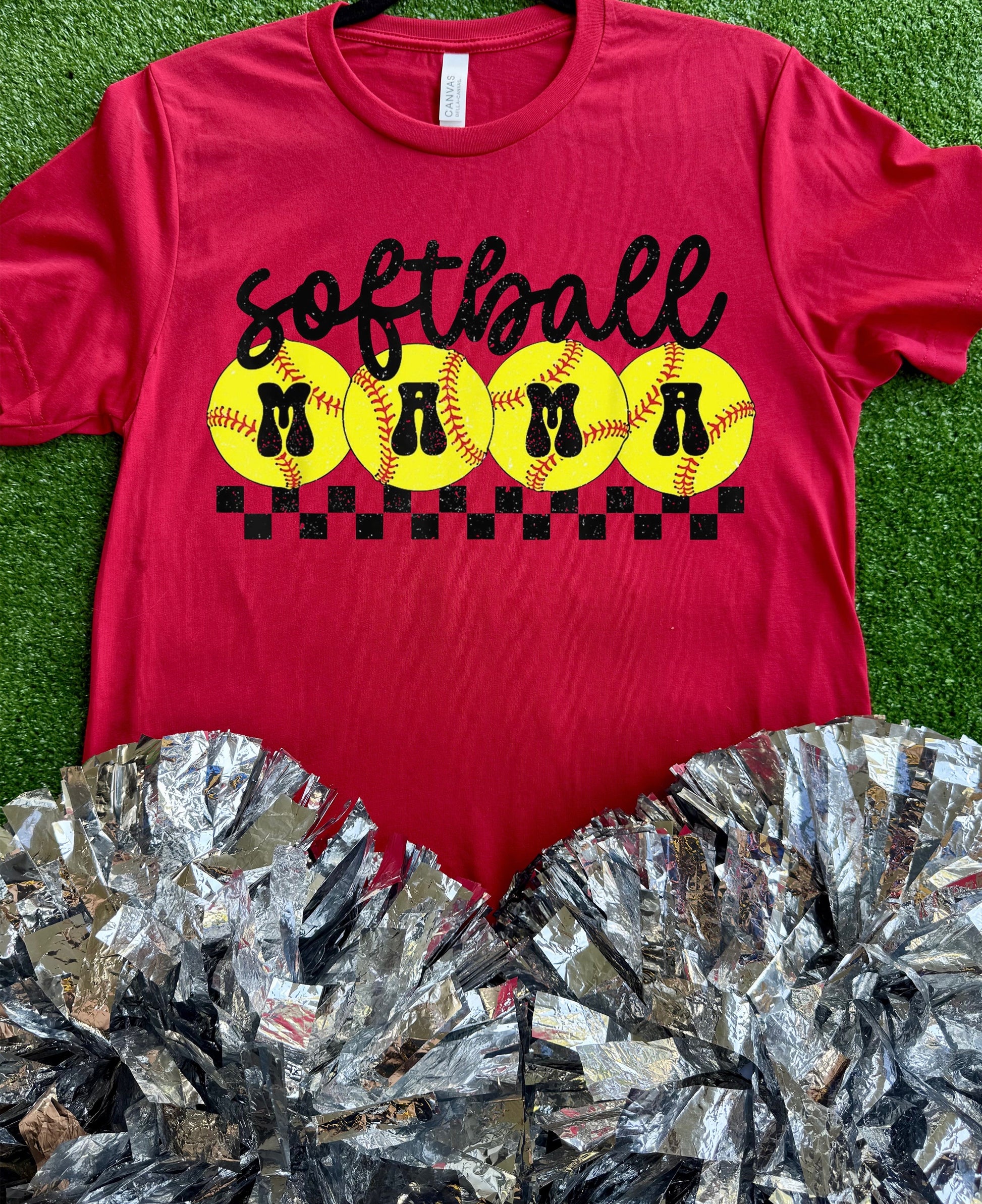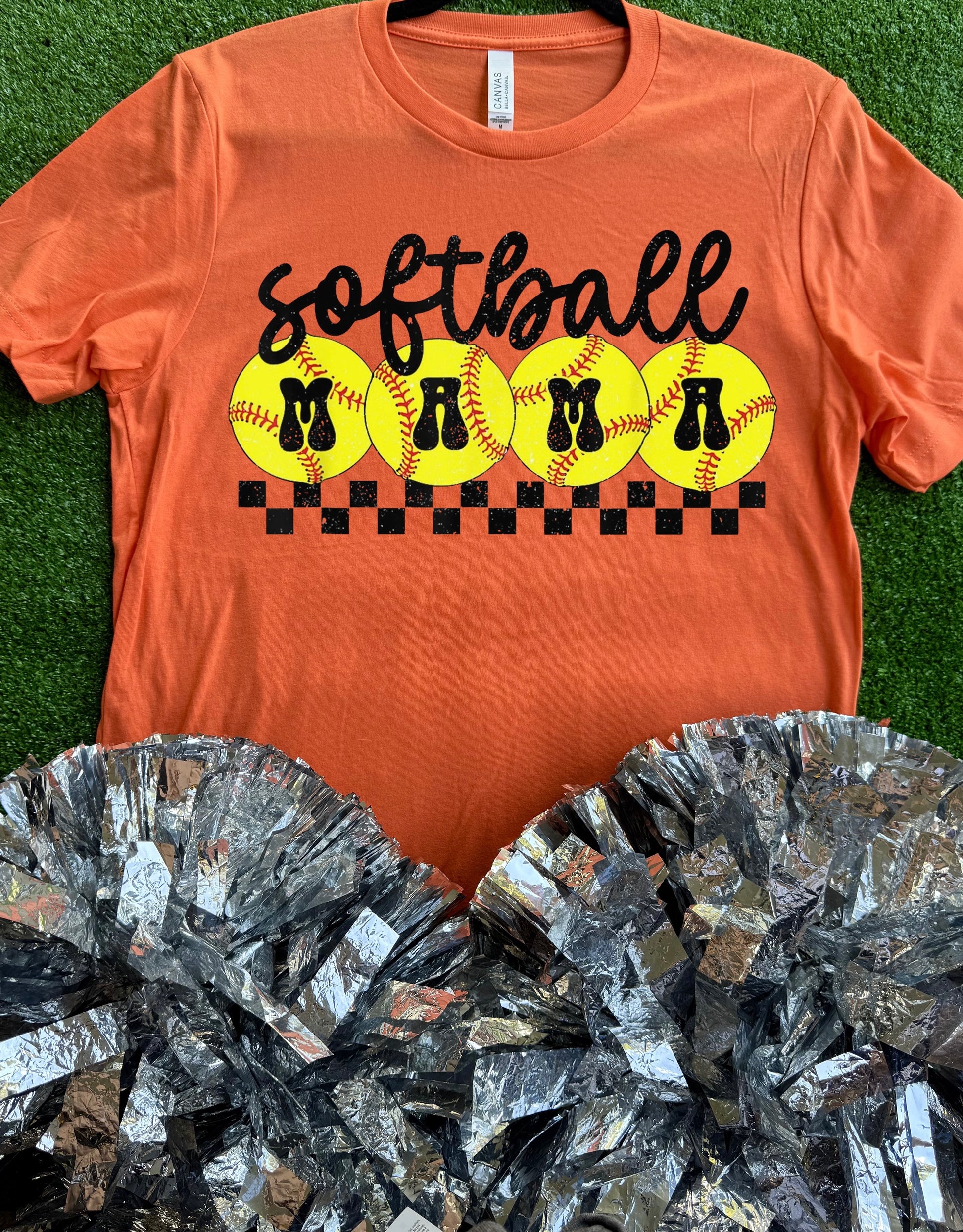 "Softball Mama" on a short sleeve Bella Canvas tee.