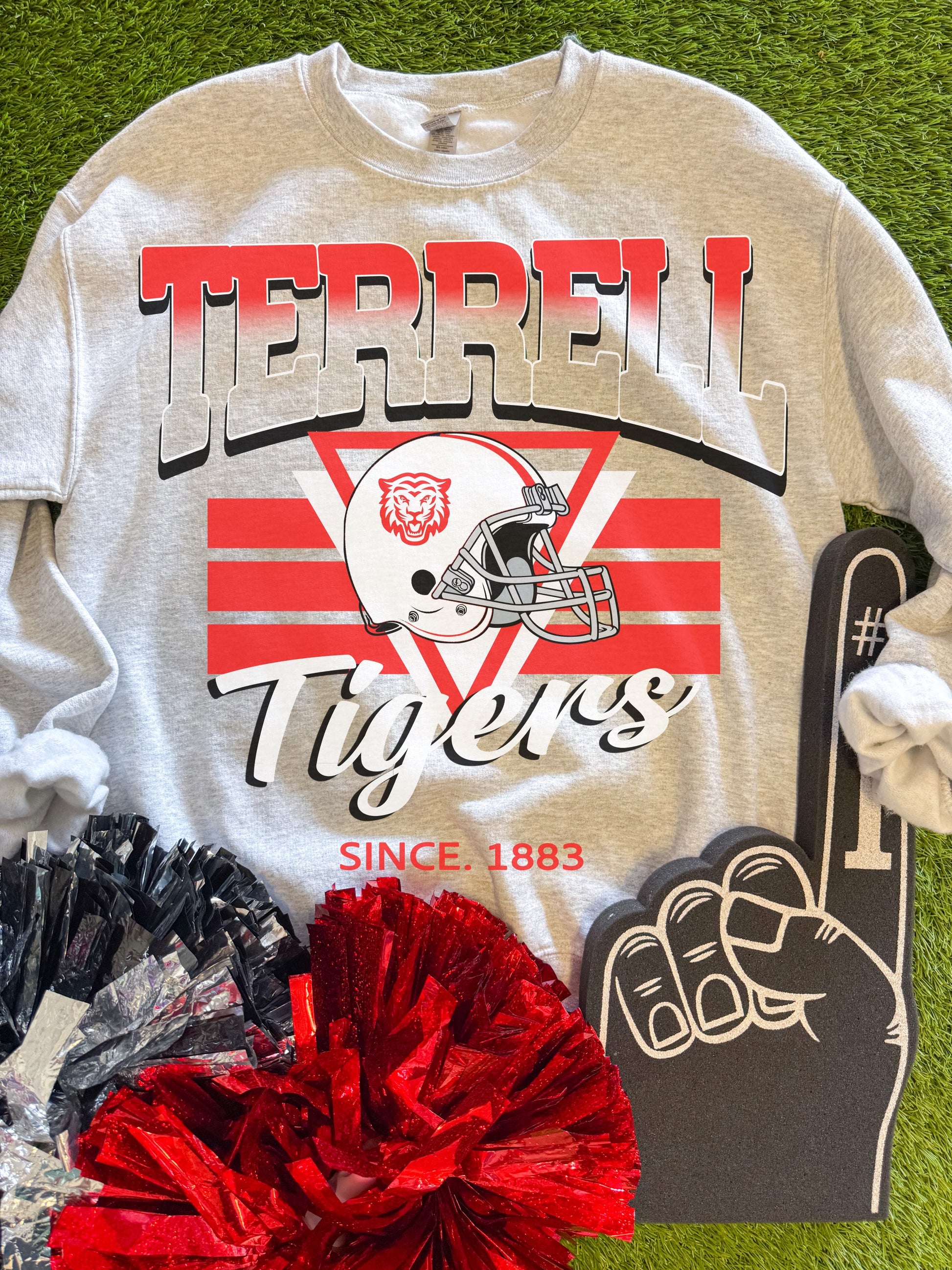 “Terrell Tigers Since 1883” Football Graphic on an Ash Grey Gildan Sweatshirt