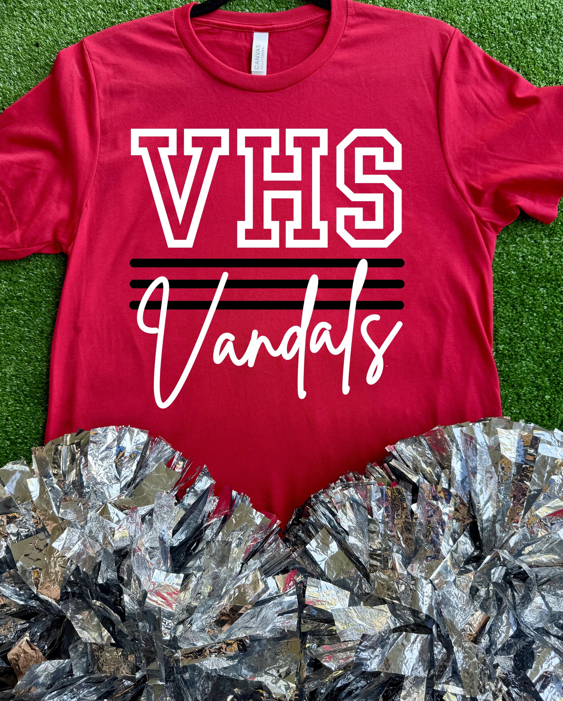 “VHS Vandals” on a Red Short Sleeve Bella Canvas Tee