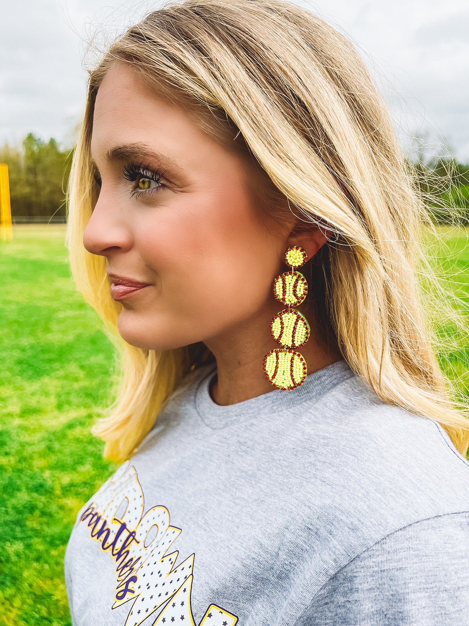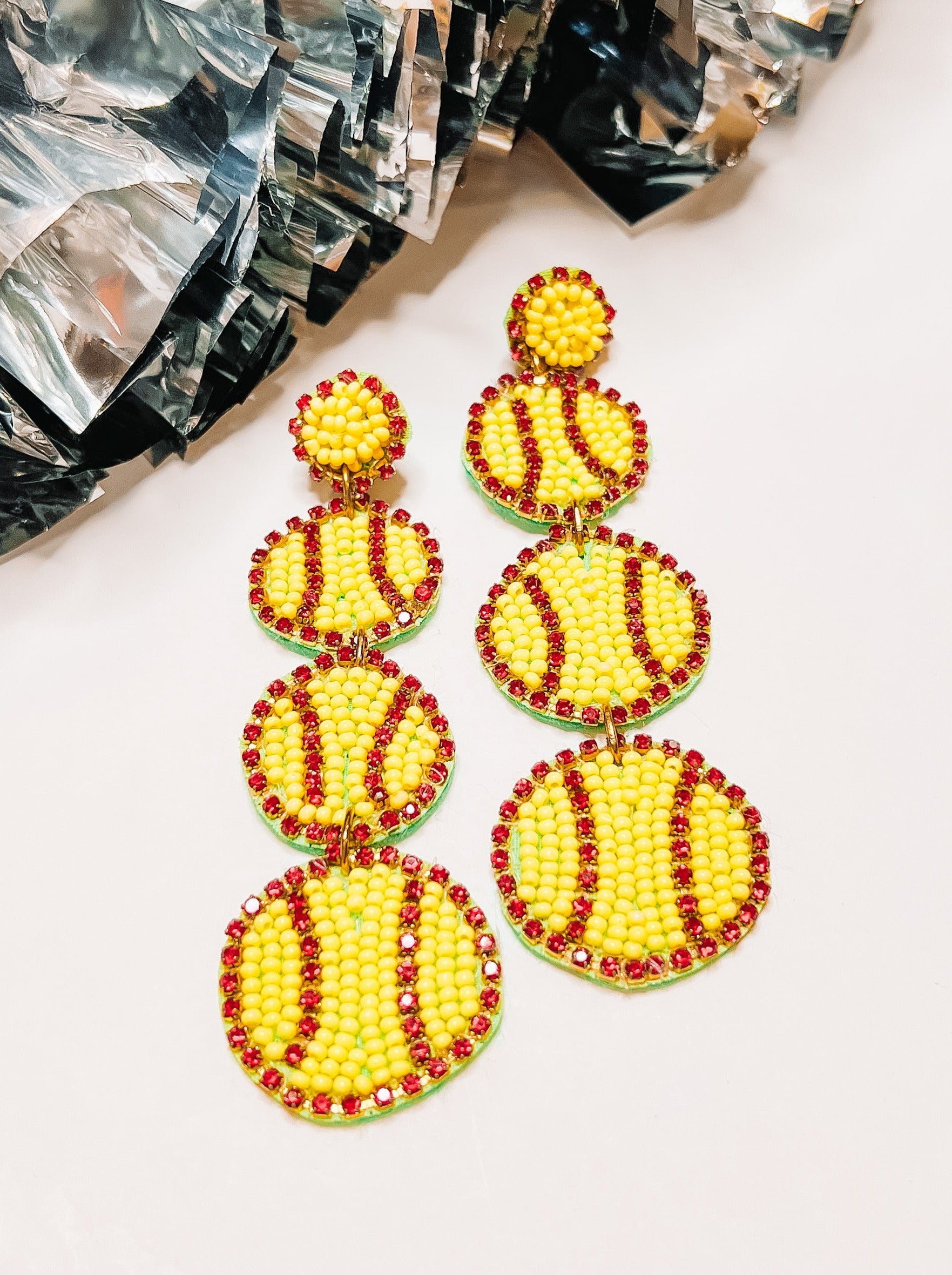 Beaded Tiered Softball Earring.