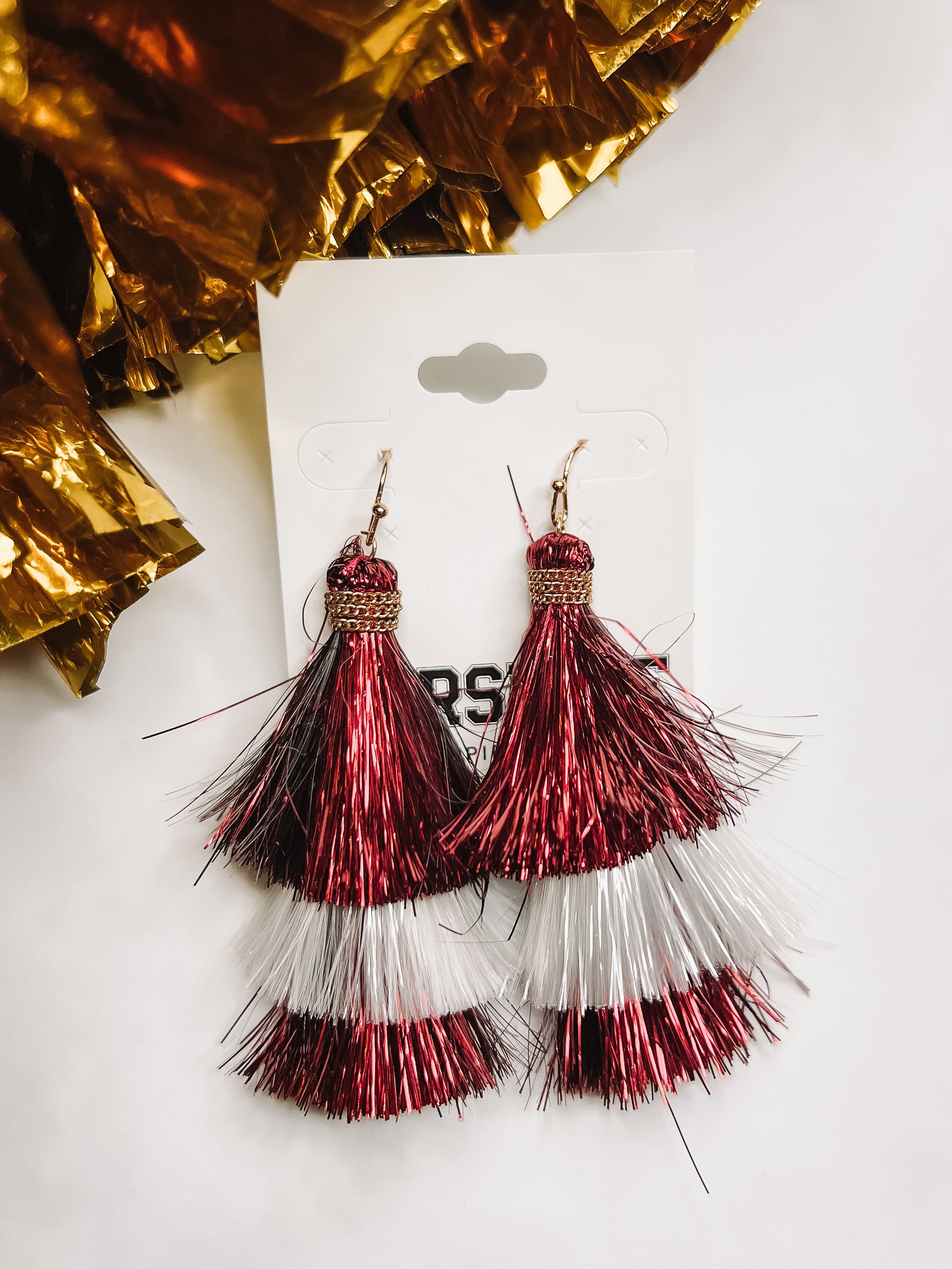 Maroon & White Metallic Tiered Tassel