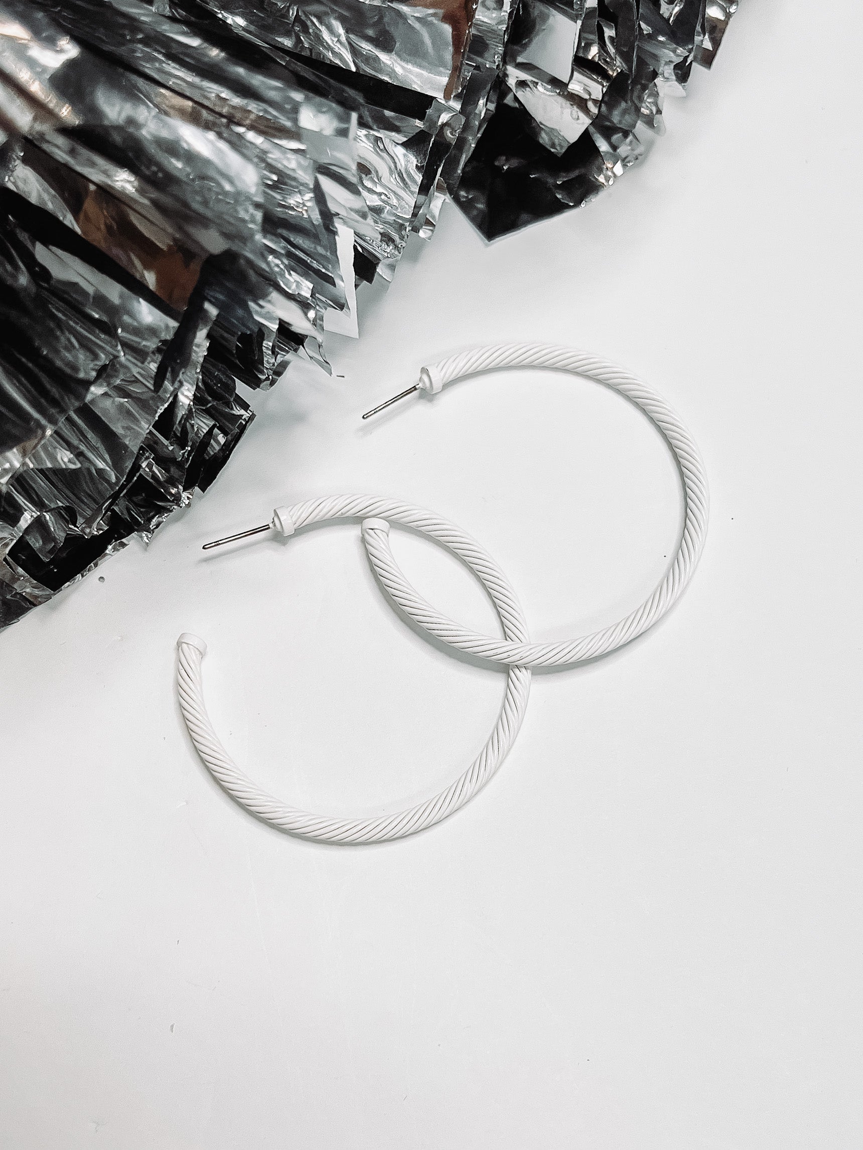 White Metal Hoop Earring with Rope Detail Engraving.