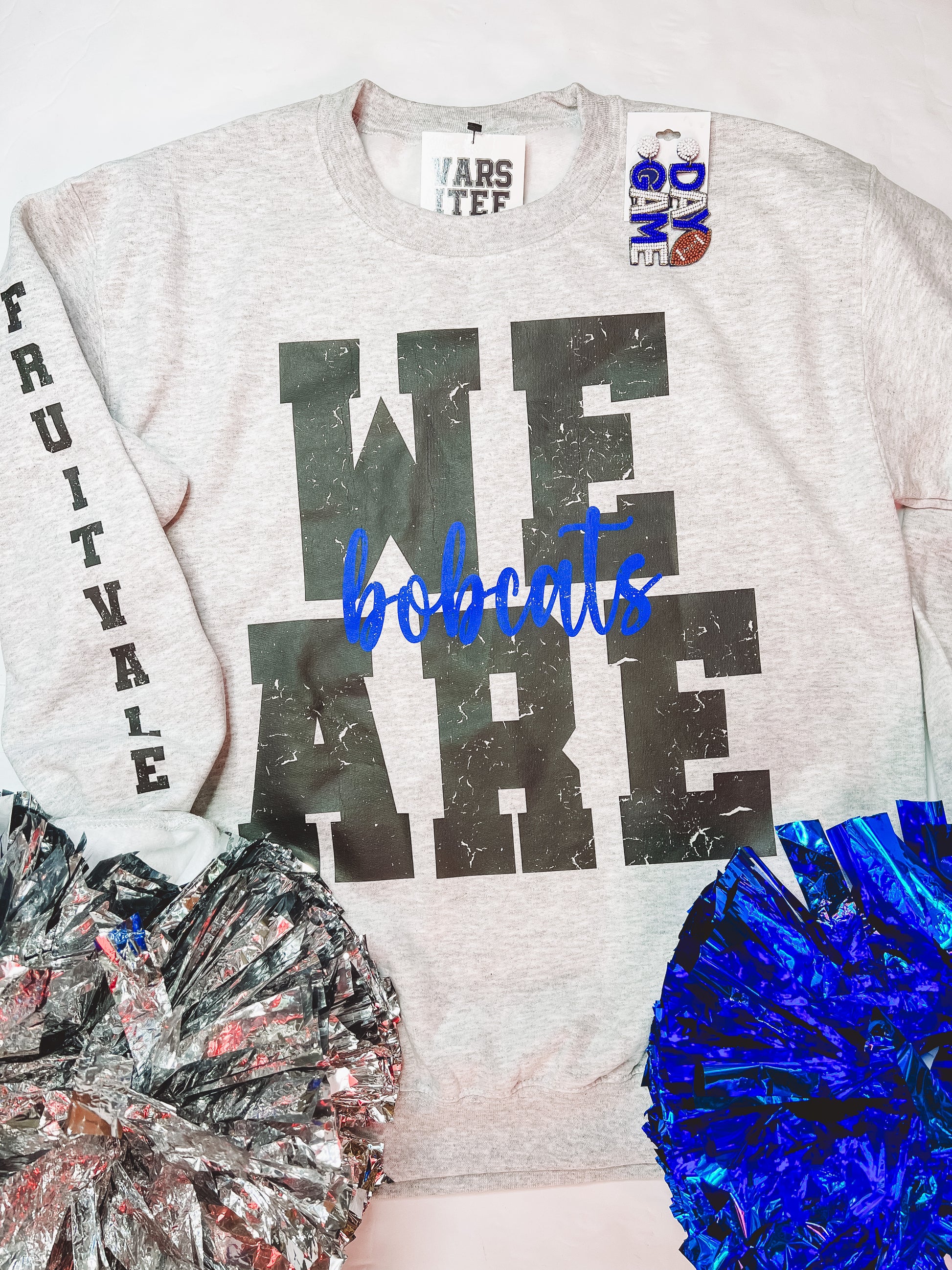 "We Are Bobcats" on an Ash Grey Sweatshirt.