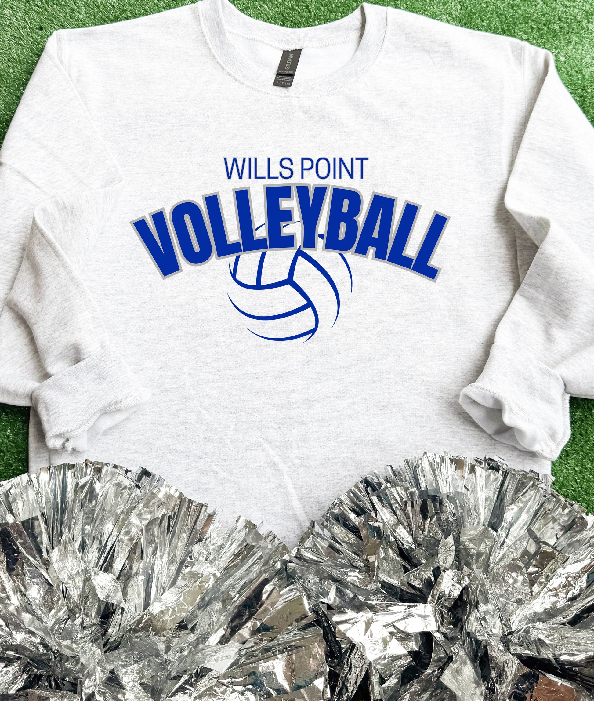 ”Wills Point Volleyball” on a White Gildan Sweatshirt.